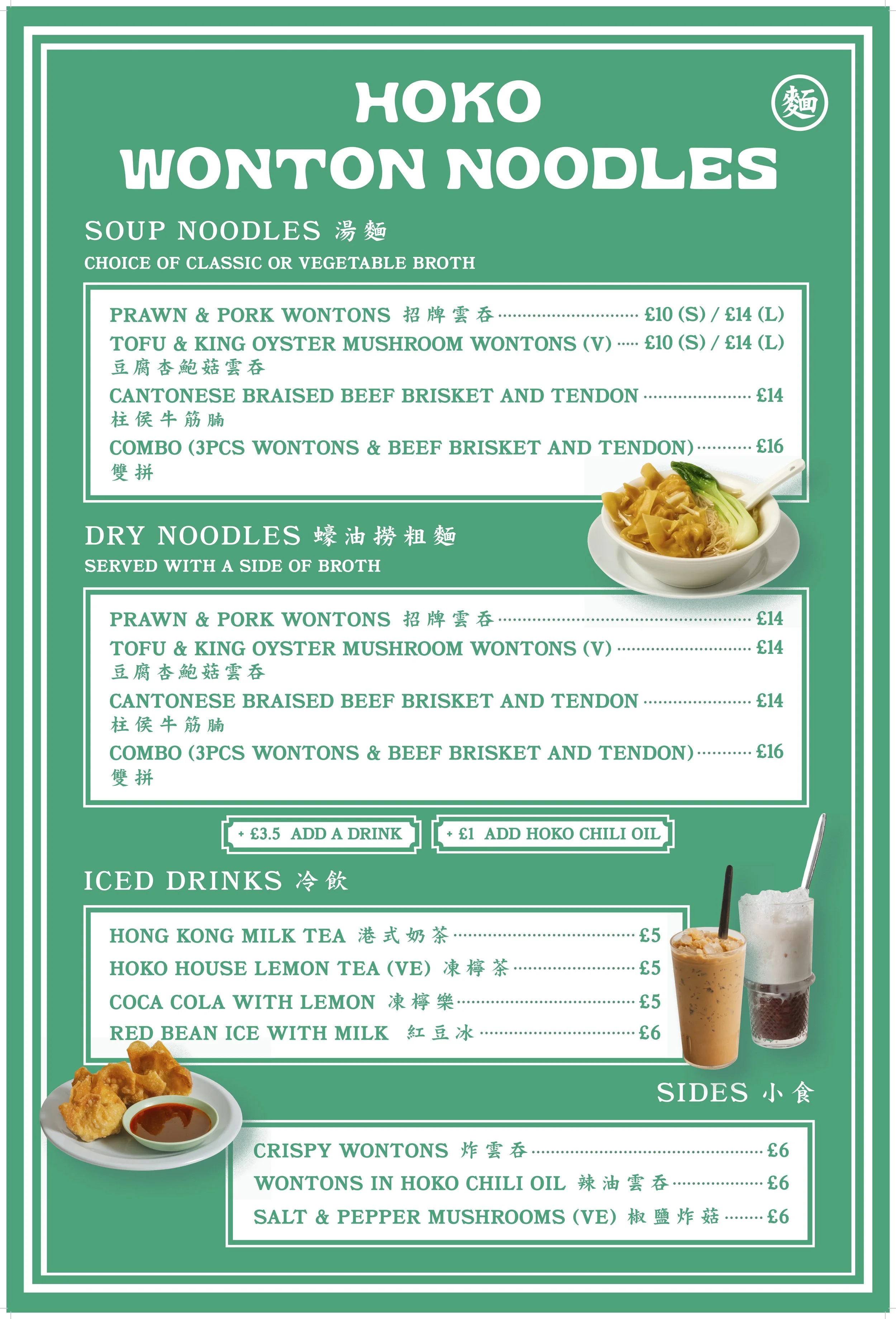 HOKO’s first permanent location in Covent Garden. A petite Wonton Noodles Parlour where the most classic Noodles dishes from Hong Kong are served. Wontons are hand-wrapped daily and we make our popular Chili Oil in house. Opens 7 days a week.